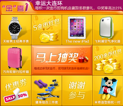 购买2013营养健康春季消费节产品,累积金币后参与100%抽奖活动!(广州站)