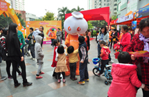吉祥物萌萌与现场消费者互动拍照留念