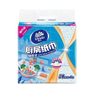 维达 80抽2层抽取式厨房纸巾 3包/提
