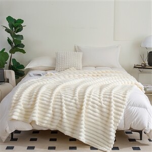 > 皇冠甄选系列条纹绒毯 加厚毯子办公室披肩毛毯被子航空调午睡毯 米色 180*200cm