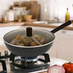 精铁打造,电磁炉燃气灶均可使用,蜂窝状锅体不粘且少烟,易清洗