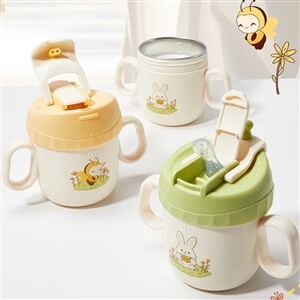 > 吸管杯直饮杯 蜜小蜂绿黄色(喷陶内胆) 300ml